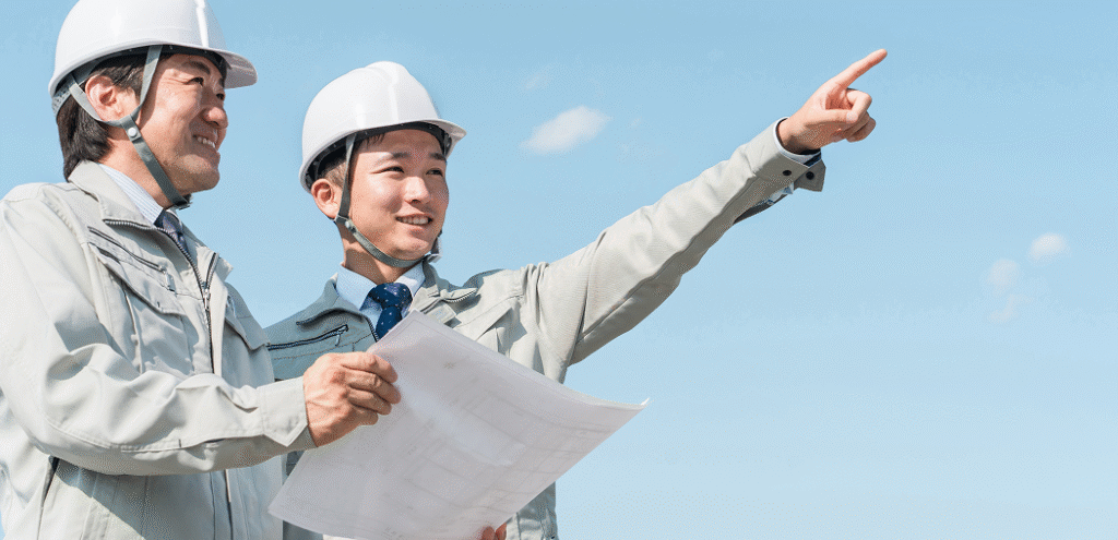 工事が予定通り進むように、職人さんや工程をまとめるお仕事です。安全・品質・スケジュールを管理し、現場全体をサポートします。